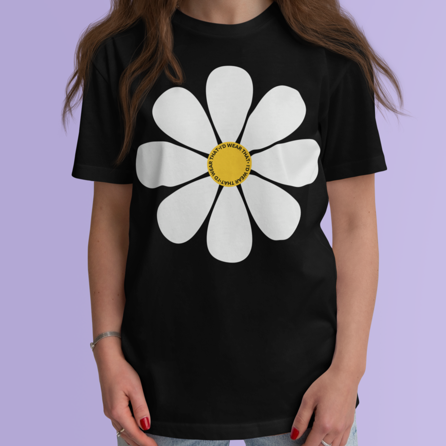 The oversized white petals and subtle pop of yellow in the daisy’s centre (with a charming “I’d Wear That” detail) bring a bit of sunshine wherever you go. Made from high-quality fabric, this t-shirt is ideal for layering over jeans, leggings, or your favourite skirt, making it a versatile piece for any season.