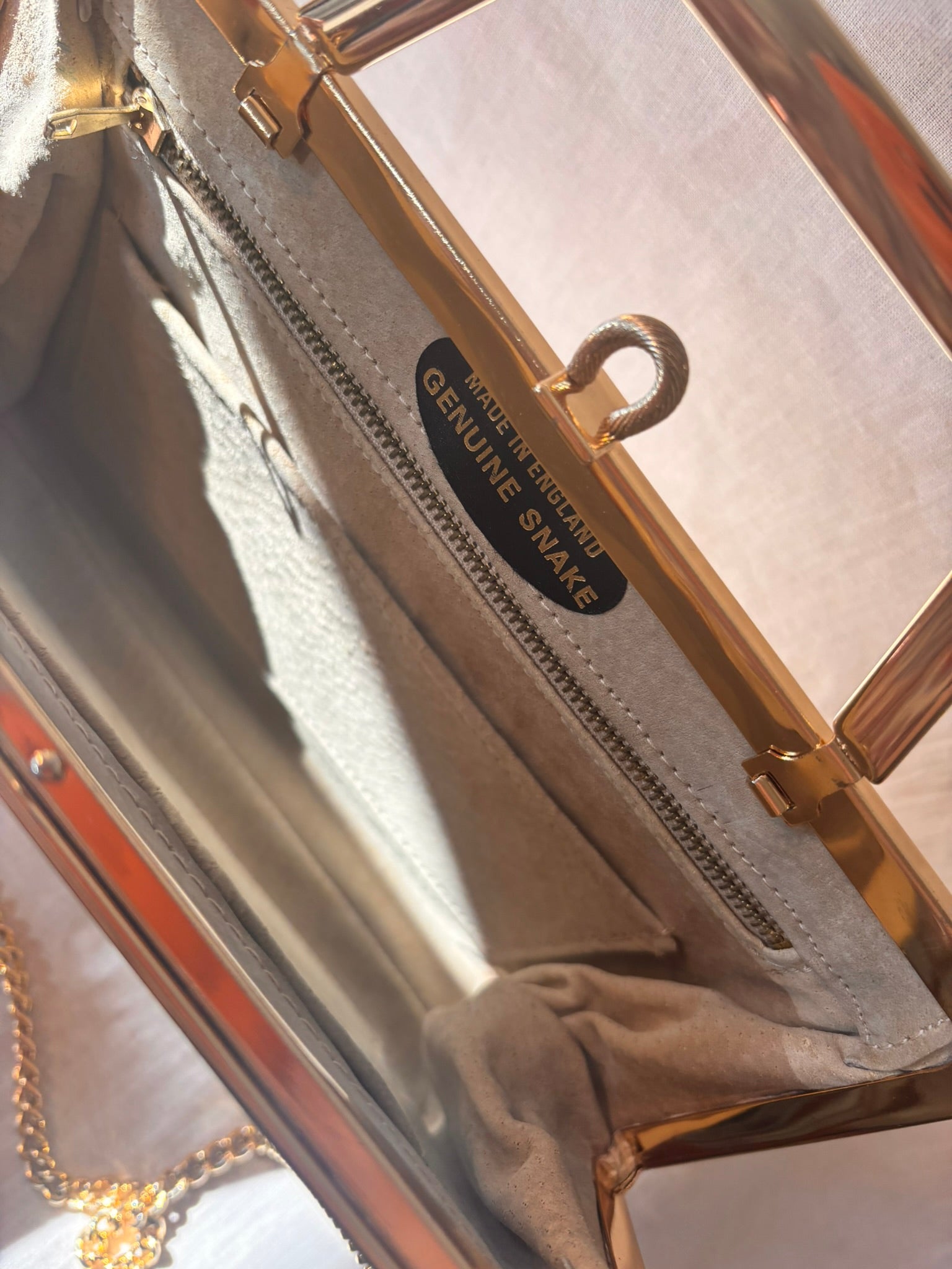 - Genuine snakeskin (likely python)