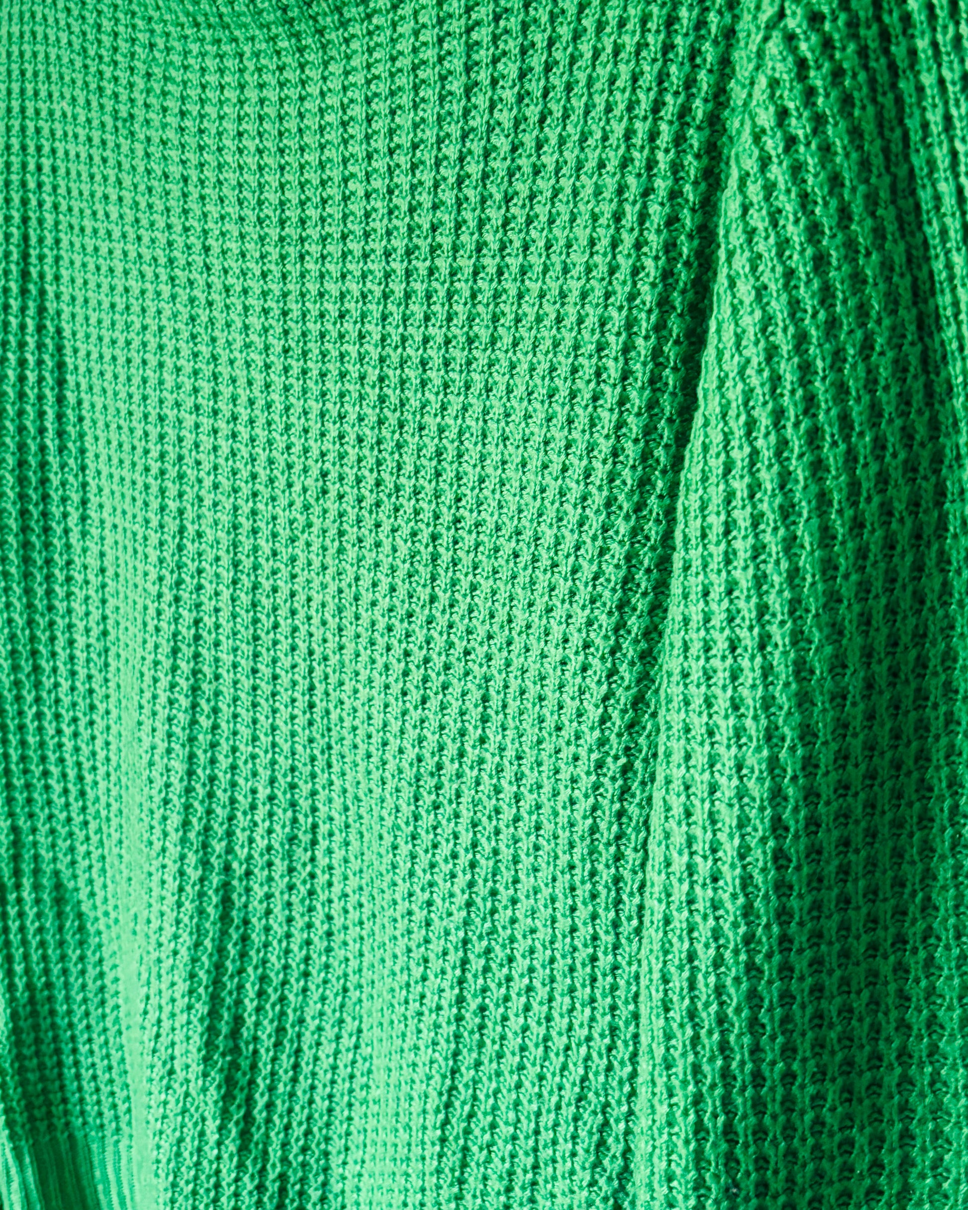 This bold green hue and lightweight yet cosy fabric make it a perfect layering piece — pair it with denim, over a printed dress, or under a vintage blazer for a true 70s look.